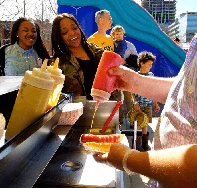 This can be donuts to pancakes, burritos to street corn – we even have some vendors who do baked potatoes. Depending on your state’s rules, you could choose other items besides hot dogs. Can you say pulled pork!