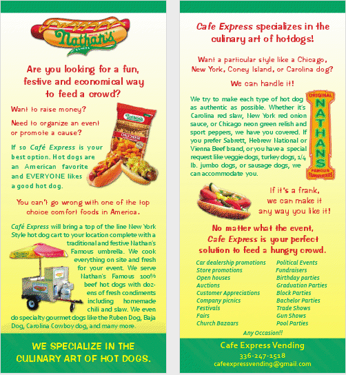 Hot dog customers don’t plan on eating hot dogs next Thursday. They are there – you are there and so they eat. Many vendors rush out and get business cards but honestly – who’s gonna put that on their fridge, in their wallet or on their rear-view mirror?