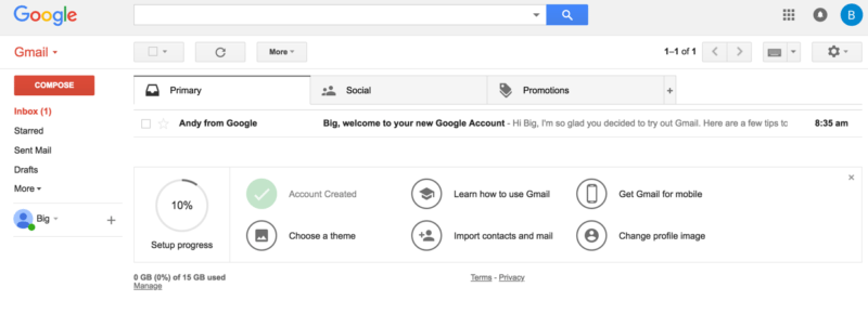 Now you’ll see the above screen and your email is officially set up. You can later explore all that you can do with Gmail. But for now… (moving on)