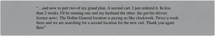 Each week my email inbox includes stories of woe to stories of hardship and then the overcoming of obstacles and challenges. All with a hot dog stand business. As they say, the proof is in the pudding…