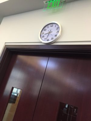 My court will return to session at 1PM sharp. If you are not back in this courtroom by 1PM – you won’t be allowed in. Then when I get to your case, you will have missed your required hearing and have failed to appear. This could mean losing your case, fines and even jail time. Don’t be late. We go by this clock on the wall, not your phone and not your watch.