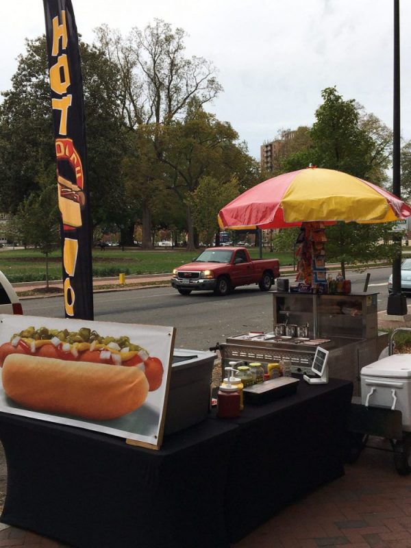 And he’s not only selling hot dogs, but you can see some of his vending locations in the photos below. He’s also catering events, selling coffee and breakfast from the cart, and doing catered breakfasts.