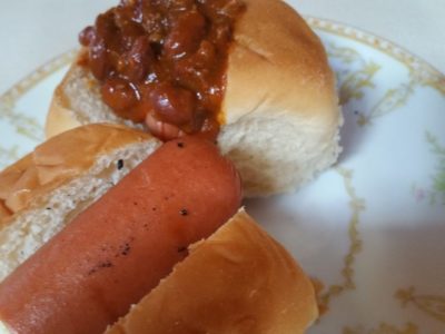 Mini dogs allow folks to test a wider variety too. Imagine Glenda, she does a 4 pack, which is 4 mini dogs in a boat with whatever topping you desire and all for $7. That’s about $2. per mini dog. I made 4 with one foot long hot dog and 4 mini rolls.