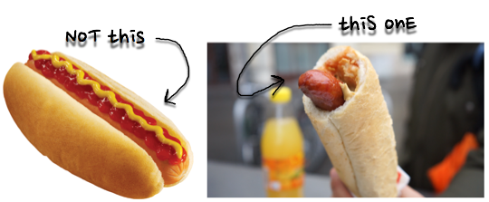 Most folks in the U.S. are serving hot dogs in a split top or side split bun. But in other countries – they put the hot dog inside a hole in the bun. No split. Now -serving hot dogs this way is becoming popular in the U.S. and some vendors swear by it.