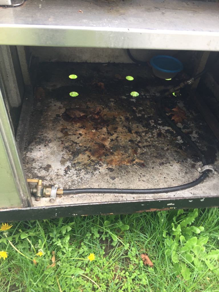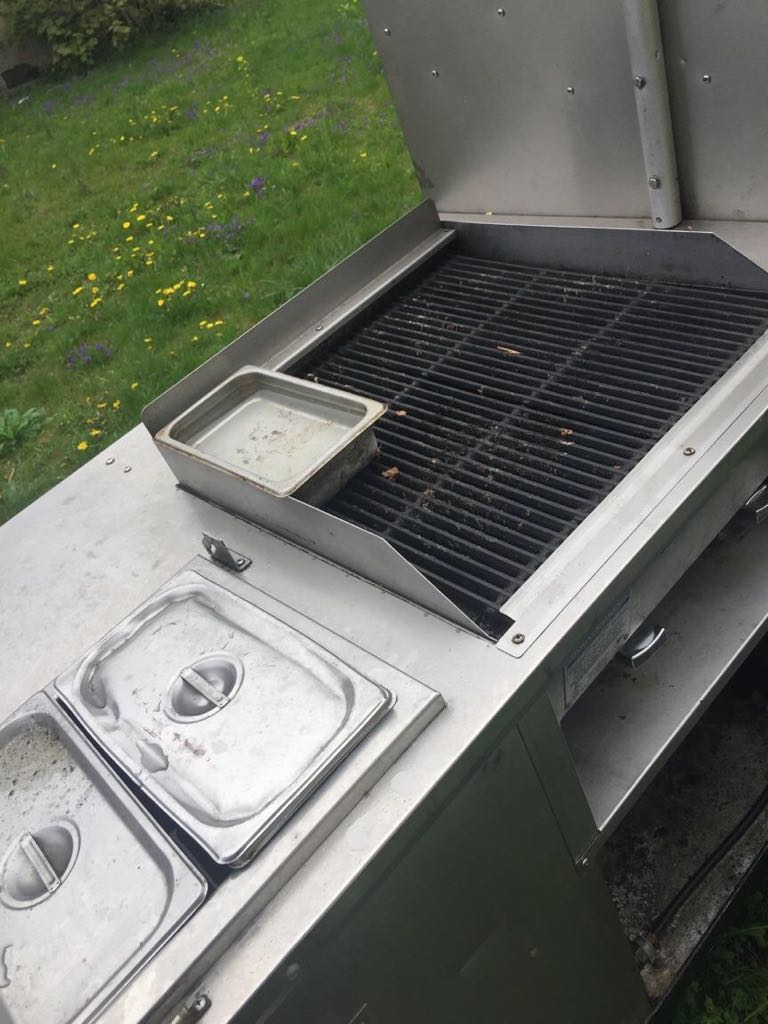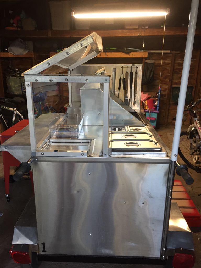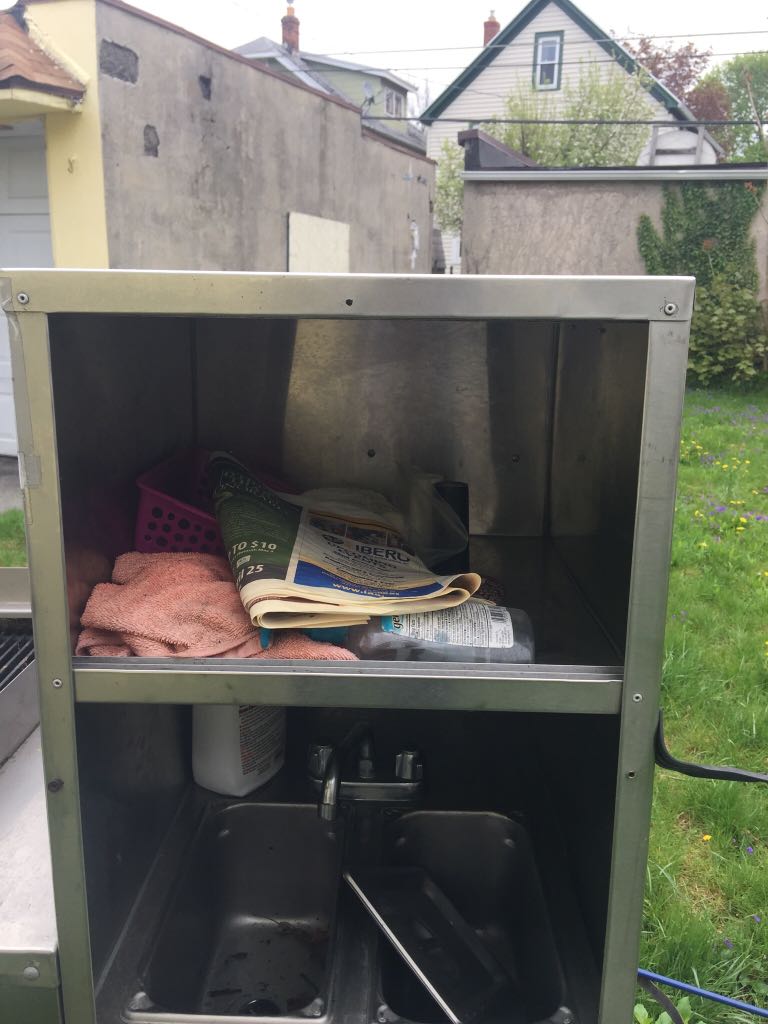 After much hard work scrubbing and scraping, after fabricating required covers, after adding surround for grill, the cart went from an old has been to a sexy beast called Roc It Dogs. [click images to make larger]
