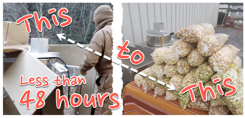 I’ve got my supplies, got my kettle corn machine, tested the machine, tested different recipes and did my first kettle corn gig all in – the last 72 hours!