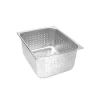 Here’s an example of using three 1/3 size pans: one for boiling, one for cooking onions and one for steaming. Yup, I said steaming. The trick is to find a 1/3 size pan that is perforated, and a 1/3 size spillage pan. It’s almost impossible. So, they have invented these handy plates to go in the bottom of the pans, called false bottoms. They are slotted, and they allow you to put water in the bottom of the pan; steam comes through the false bottom, thereby turning an individual pan into a steam pan.