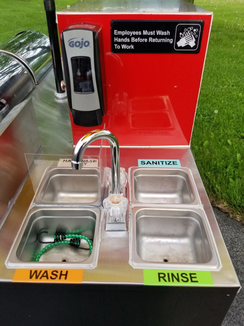 After seeing the cart, I went out and bought new chrome wheel covers to match the truck. The large blank area where the breadbox reads “Menu” will be receiving vinyl removable menu items and pricing. The printer does them up on basically the same stuff that the sports “FatHeads” were printed on and I can change items or remove as needed. A standing A-frame sign will display specials and other messages for now, but a digital board concept is being worked on at the moment.